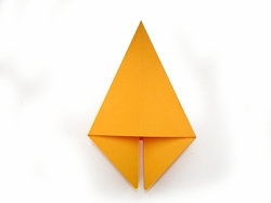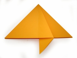 4. Используя линию сгиба выворачиваем(разворачиваем угол так, чтобы крайний нижний угол оказался по центру нашего основного треугольника. (См. фото)