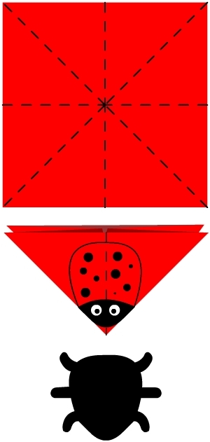 Наложите основу жука на красный треугольник и обведите карандашом. Вырежьте модель.