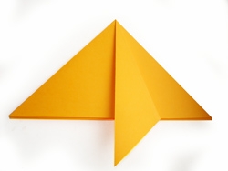 3. Намечаем линией сгиба середину правого треугольника, складывая его пополам, как на фото. Разворачиваем.