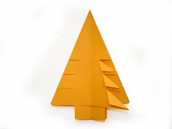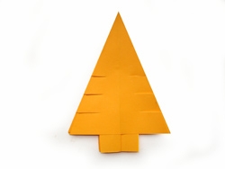 6. После всех загибов углов должна получиться вот такая фигура.7. Далее нам потребуются ножницы. Срезаем низ ромба либо целиком, либо моделируя ножку у елки. Делаем по три надреза по сторонам. Надрезы делаются не до середины и параллельно основанию будущей елки.